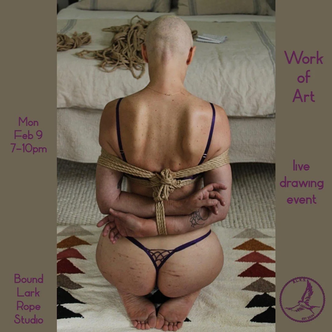 This event will give attendees an opportunity to contemplate how a human figure is expressed in rope bondage and capture it in their own artistic representation.